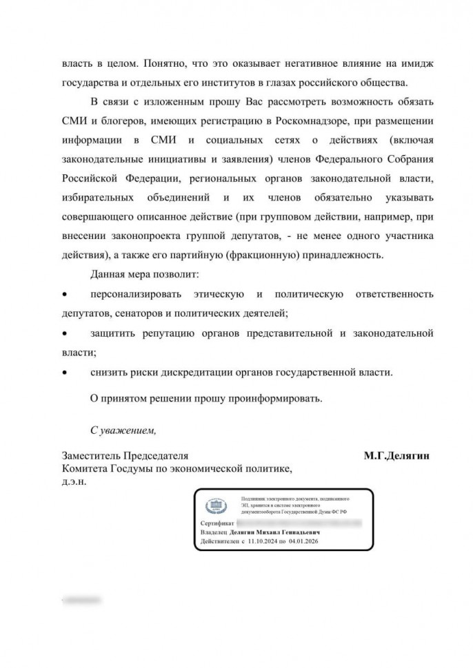 Михаил Делягин обратился в Роскомнадзор с предложением