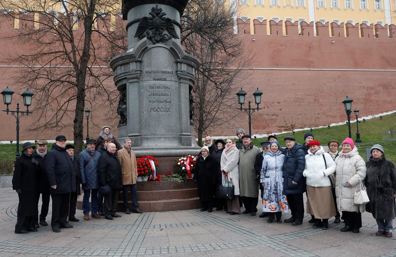 В понедельник, 1 декабря, в Александровском саду Московского Кремля у памятника Императору Александру I Благословенному состоялась Мемориальная акция, посвящённая 200-летию со дня кончины Императора Александра I, победителя Наполеона, с возложением венков и цветов, сообщила «Русской народной линии» пресс-служба Женского патриотического общества.