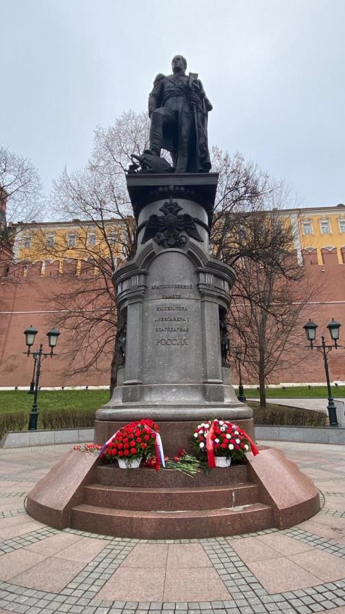 В Александровском саду Кремля состоялась акция памяти с возложением венков и цветов к памятнику Александру I Благословенному