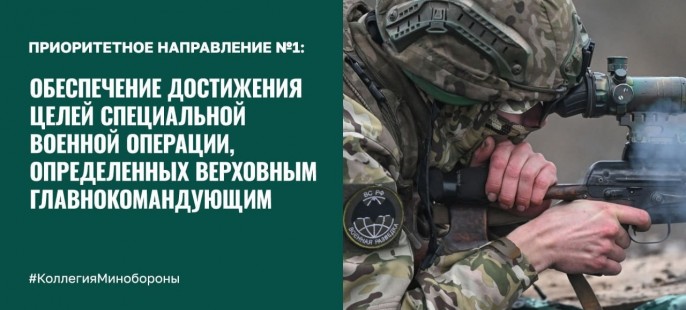 Первое приоритетное направление — обеспечение достижения целей специальной военной операции, определённых Верховным Главнокомандующим.